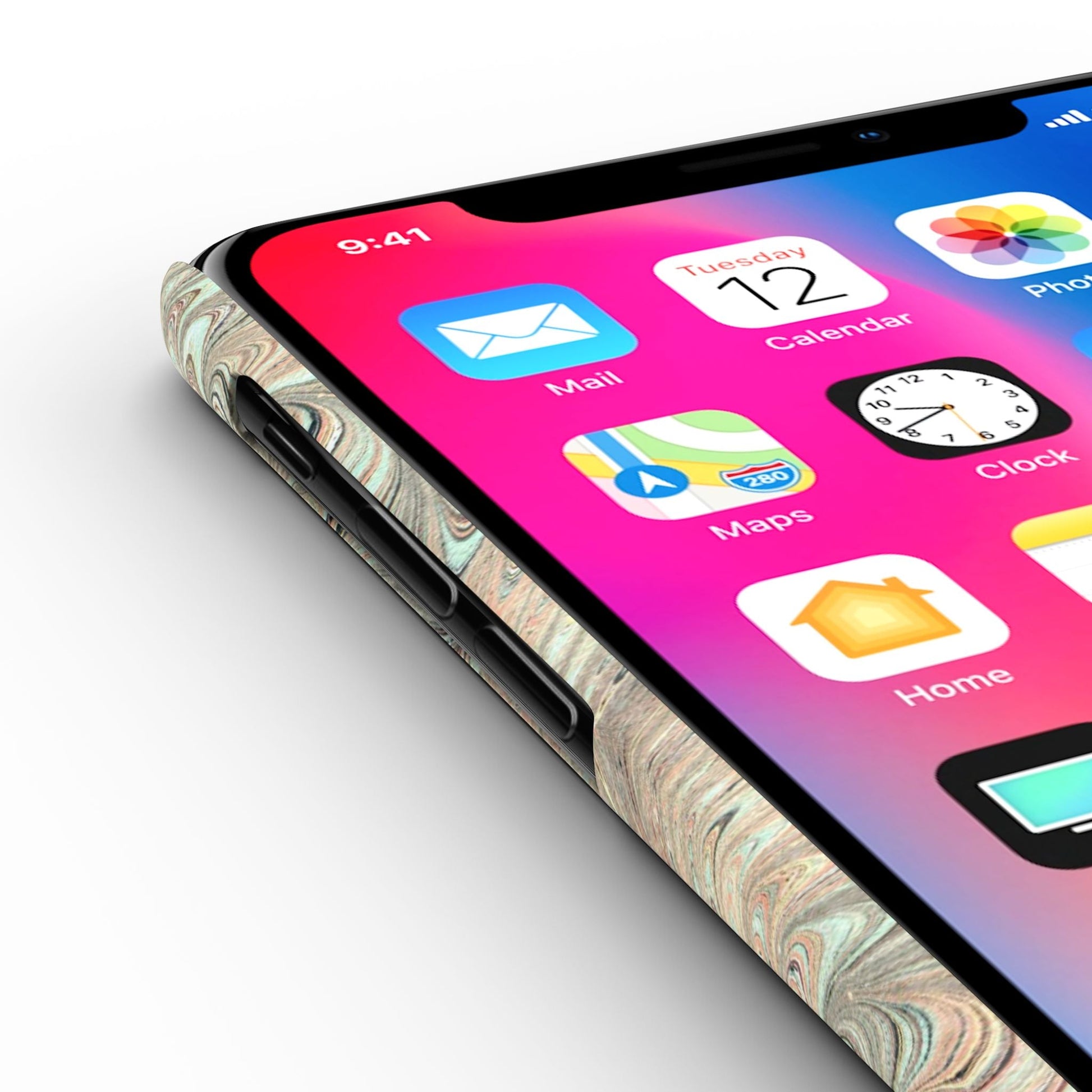 Marbled Design, Italy Feather Phone Case, Multi-Color, Slim Phone Cases. Paper marbling is a method of aqueous surface design, which can produce patterns similar to smooth marble or other kinds of stone. The patterns are the result of color floated on either plain water or a viscous solution known as size, and then carefully transferred to an absorbent surface, such as paper or fabric. Through several centuries, people have applied marbled materials to a variety of surfaces.