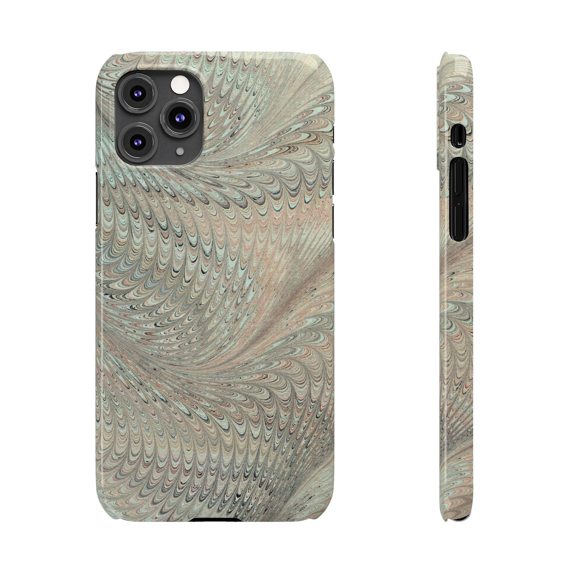 Marbled VIntage Design, Italian Feather Phone Case, Green Hues, Mint, Beige, Neutrals, Slim Phone Cases, IPHONE16 and all sizes